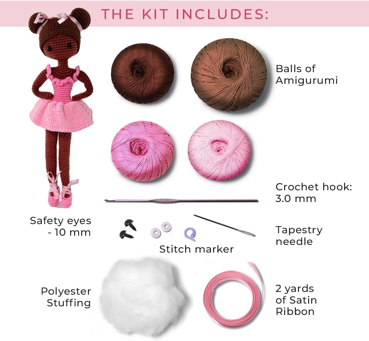 - QUALITY CRAFTING: Our complete kit ensures a seamless crafting journey, providing premium Amigurumi yarn, satin tape, crochet hook, tapestry needle, amigurumi's eye, stuffing fiber, stitch marker for crafting cute ballerina dolls.