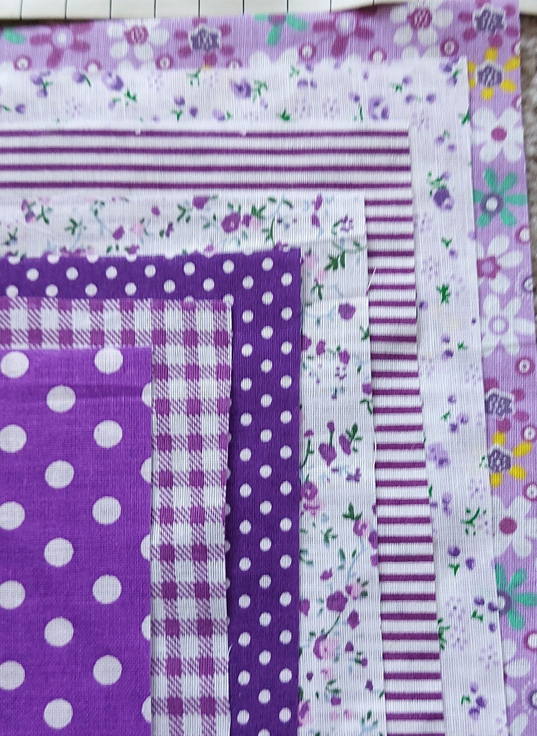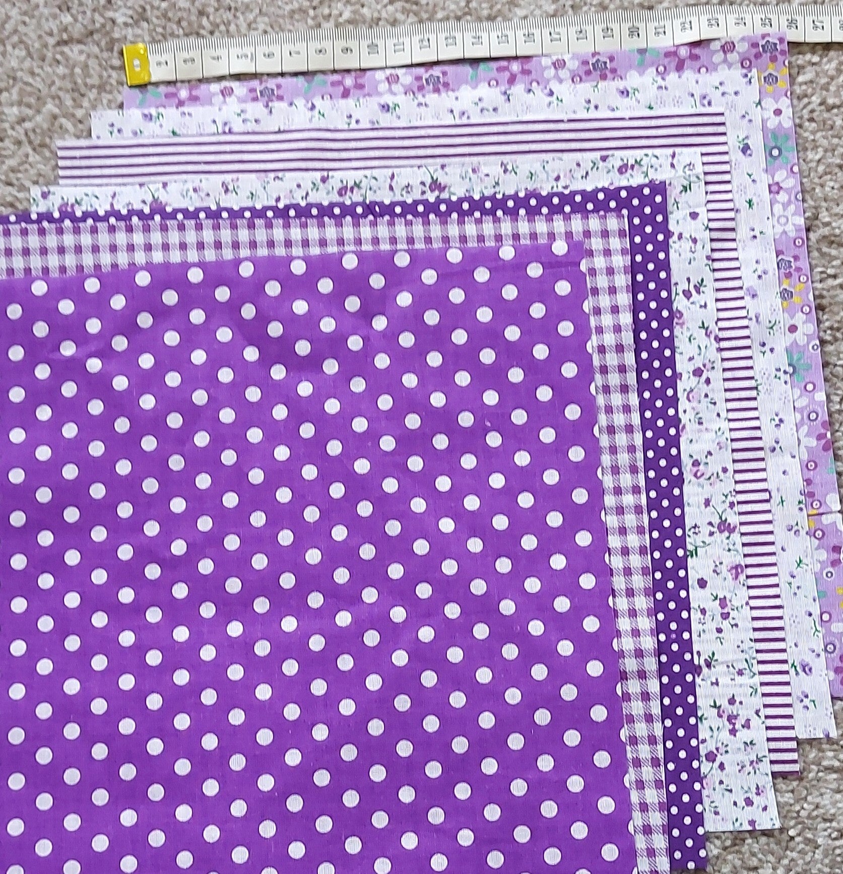 Purples 25cm x 25cm Cotton Fabric. 7 Pieces
