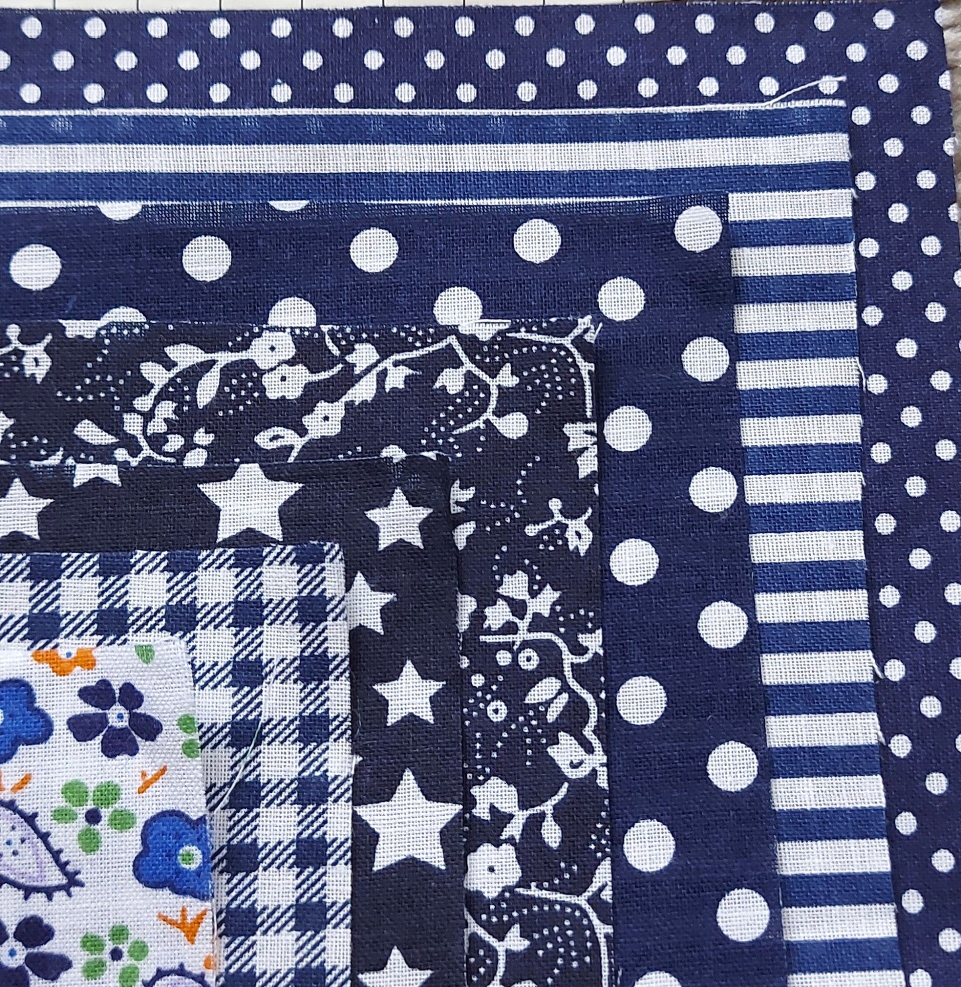 Dark Blues 25cm x 25cm Cotton Fabric. 7 Pieces