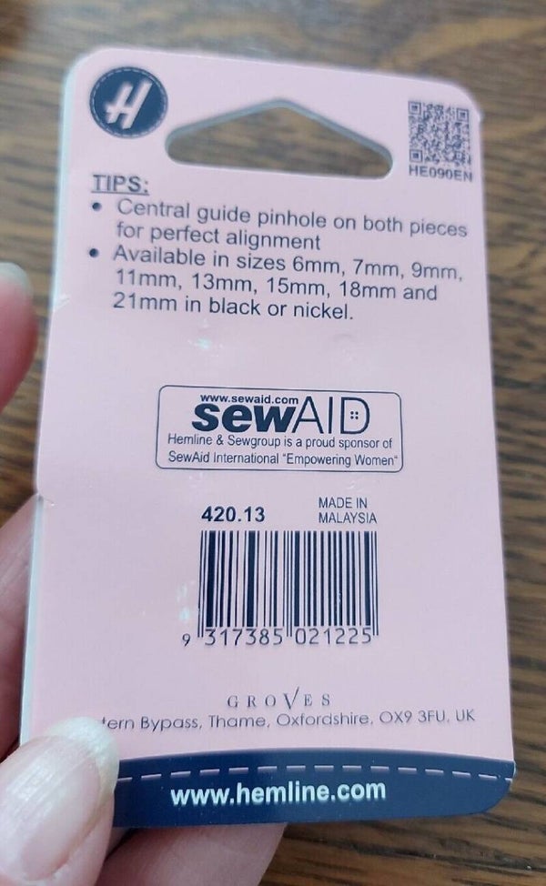 Hemline 13mm Snap Fasteners X 6 Silver/nickel