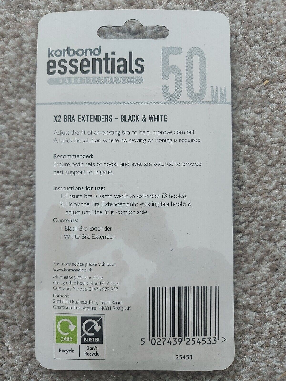 2 X Bra Extenders 3 Hook. 50mm. Black And White.