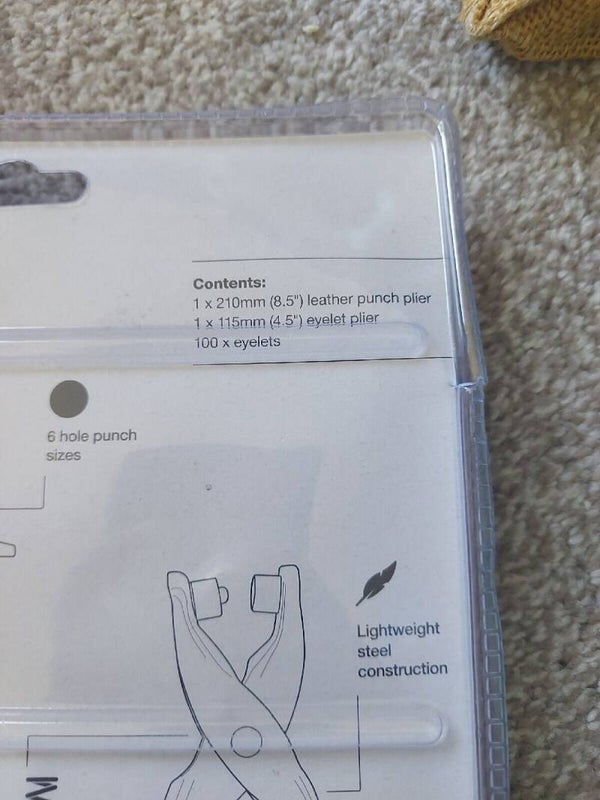 This Leather Punch Plier is ideal for crafting purposes, but can also be used for everyday tasks like modifying belts and accessories. This 8.5% leather punch plier has six different punch sizes, giving you plenty of choice when adding holes to soft materials. This tool also includes 100 eyelets with a 4mm interior so you can ensure that the holes you punch are expertly finished.