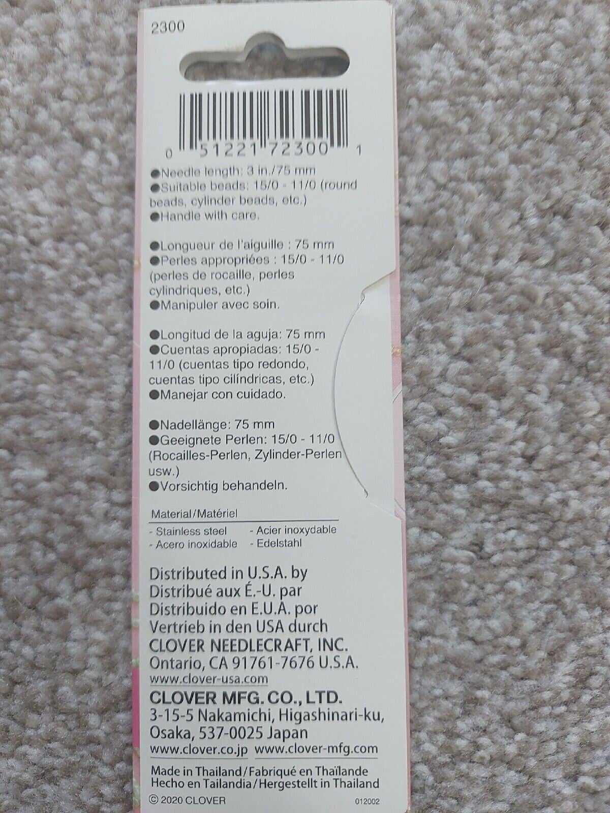 Clover Swift Bead Beading Needles. 2 Pieces.