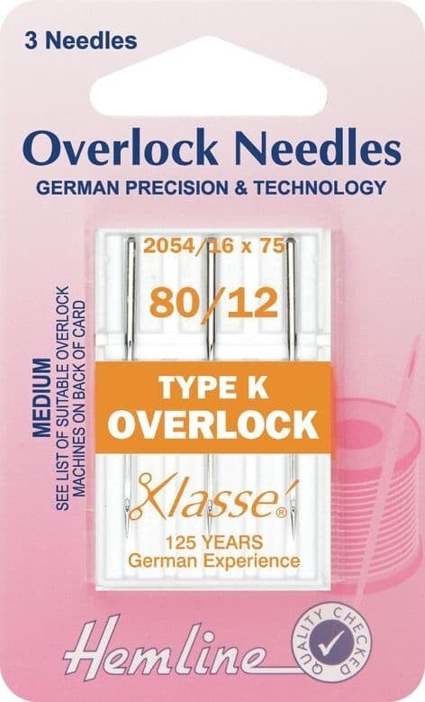 Overlocker machine needle, Size: 80 / 12, Type K. Refer to manufacturer's literature to select correct needle for correct machine.